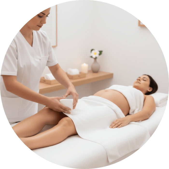 Con los tratamientos para embarazadas ayudamos a eliminar la inflamación de los tobillos, mejorar la retención de líquidos, eliminar la sensación de pesadez en las piernas, eliminar los dolores de espalda y ciática, entre otras cosas.